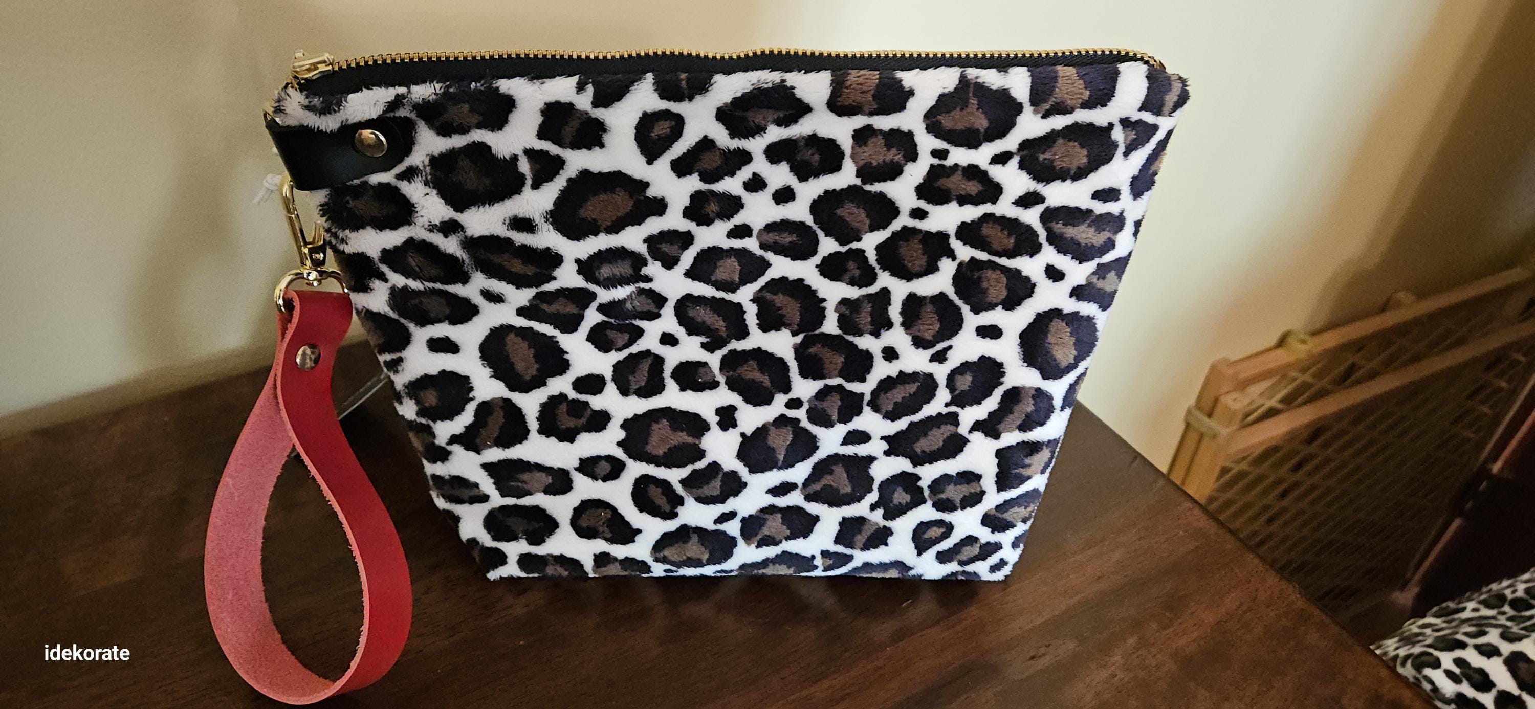 Leopard Print Bag, Leopard Print Clutch, Makeup Bag. Plush Faux Fur.